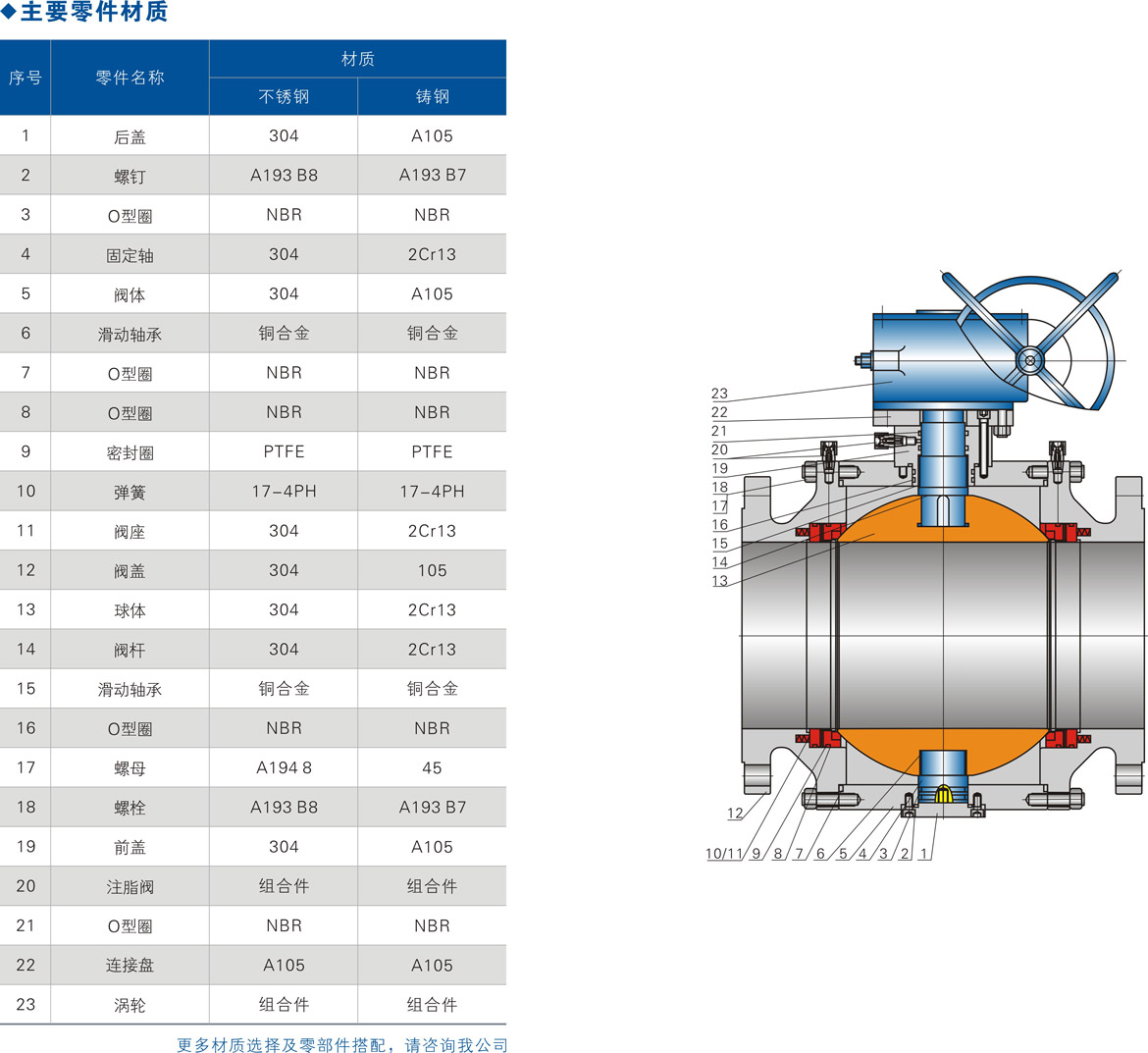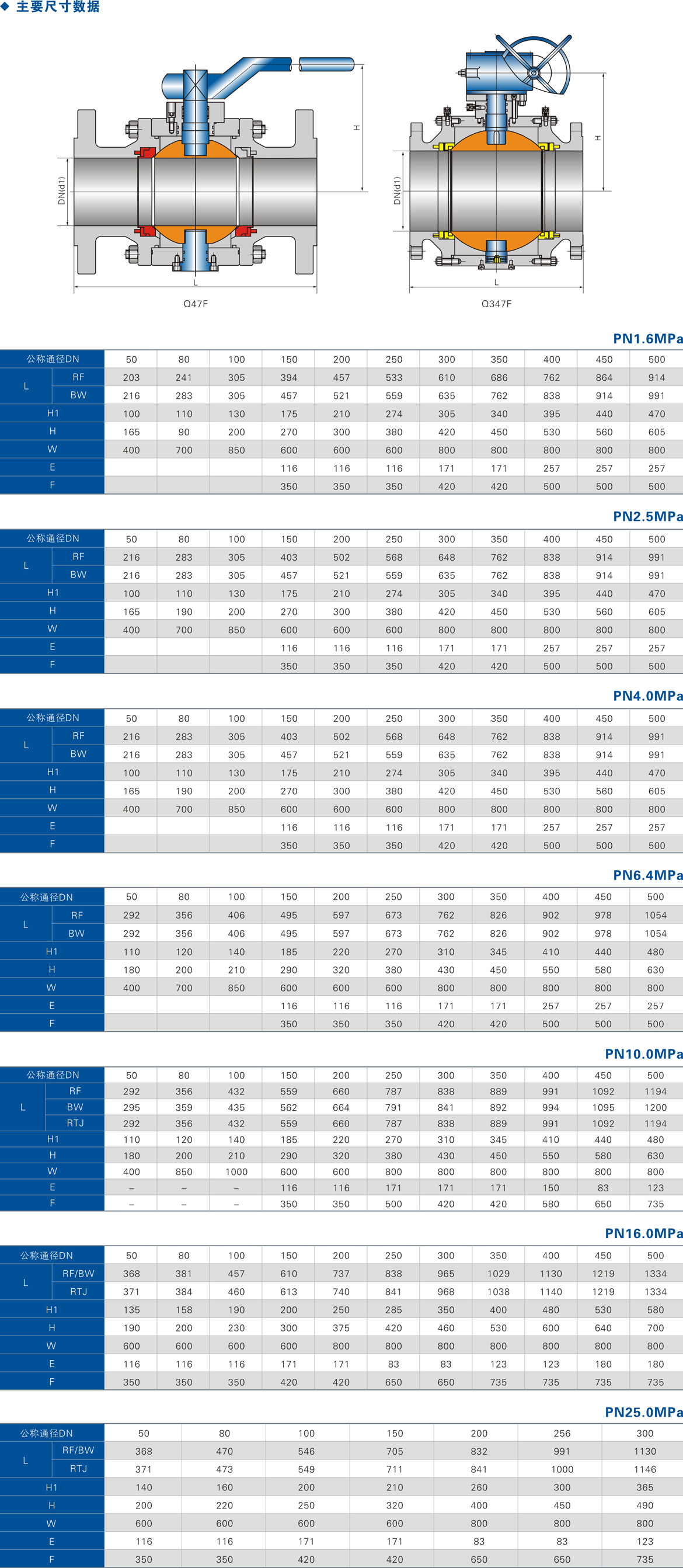 ②锻钢固定球阀与浮动球阀相比,工作时,阀前流体压力在球体上产生的作用力全部传递给上、下阀杆,不会使球体向阀座移动,因而阀座不会承受过大的压力,所以固定球阀的带压开启力矩小、阀座变形小,密封性能稳定、使用寿命长,适用于高压、大口径场合。