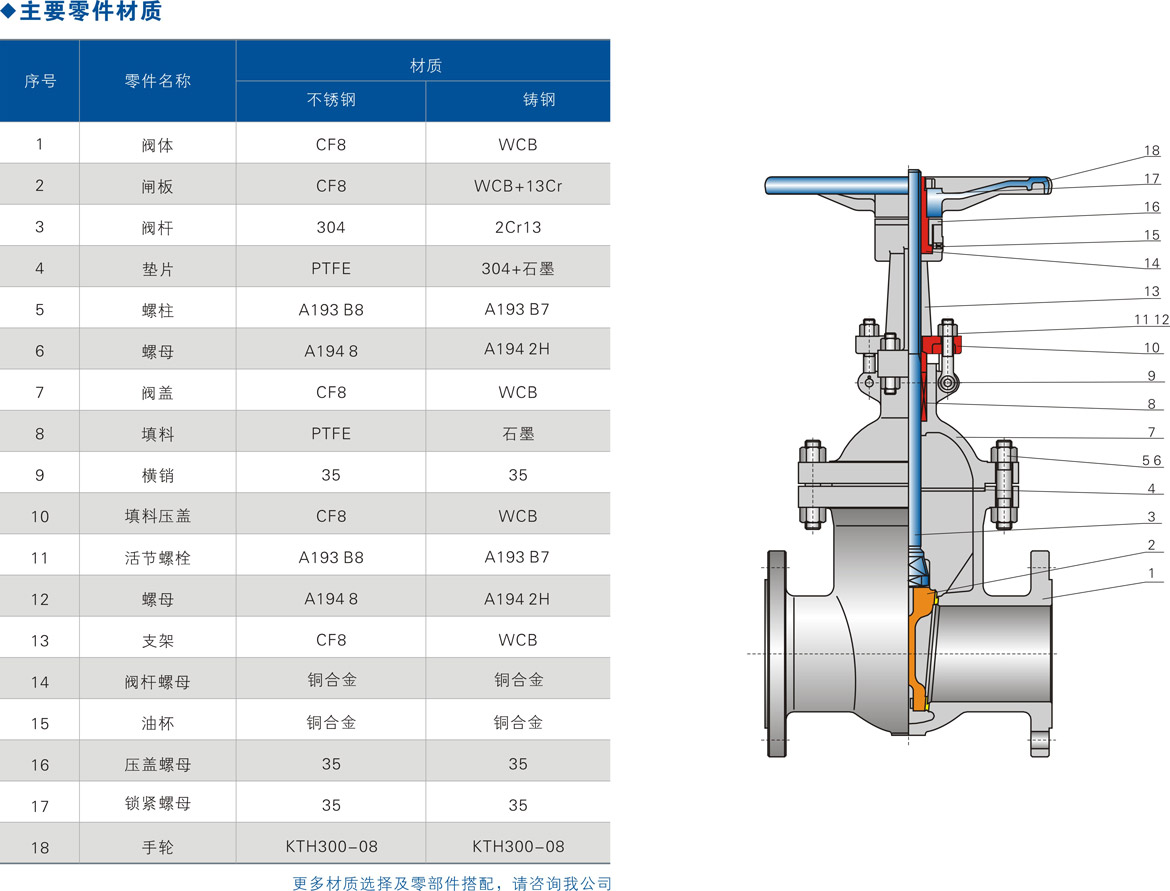 ③阀盖中道垫片形式:PN10~PN40闸阀采用不锈钢石墨复合垫片;PN63~PN100闸阀采用不锈钢石墨缠绕垫片; PN160自密封闸阀采用自压密封金属环。