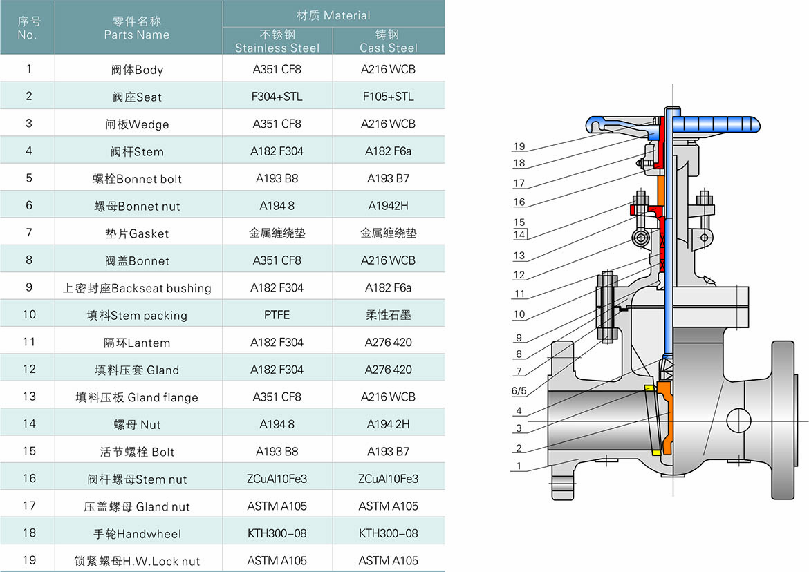 ①阀体和阀盖连接形式:Class150~ Class900采用栓接阀盖;Class1500~Class2500采用自压密封式阀盖。