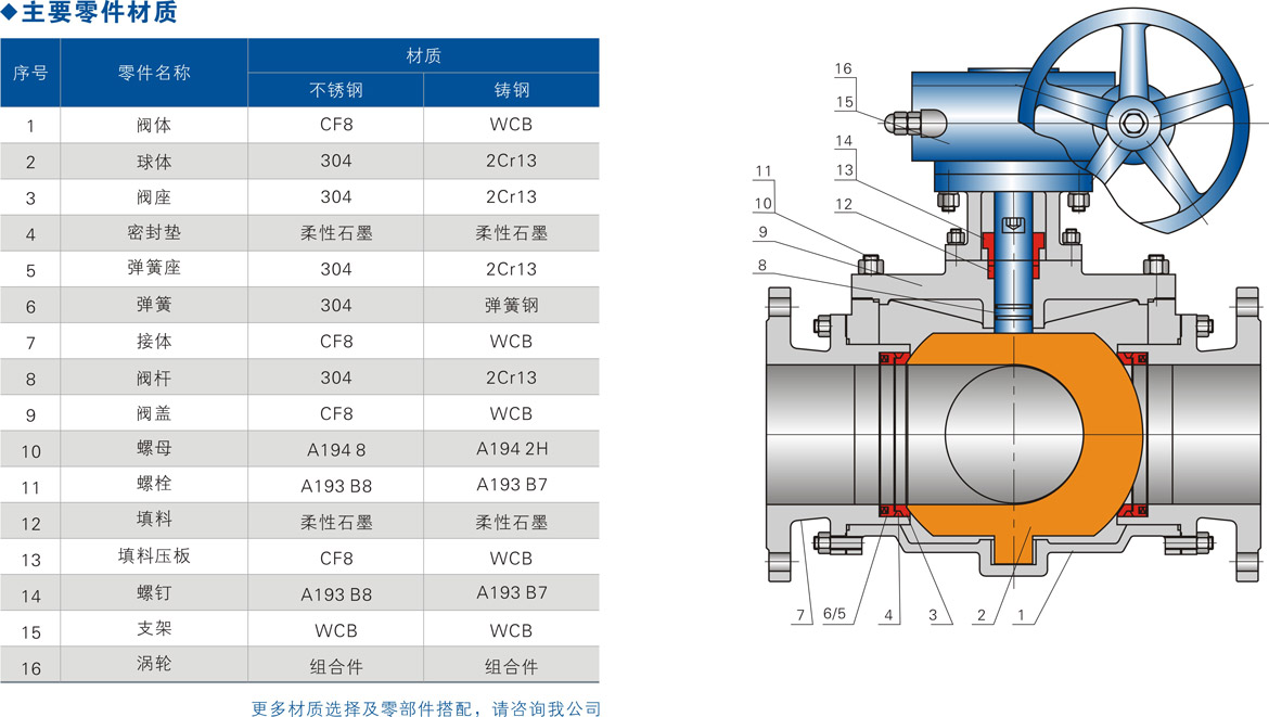 ⑥防火结构:当发生火灾时,阀座材料被烧坏,大量泄漏的介质可能加促火势。浮动球体在介质的推力作用下,推动到阀体上,形成短时间的密封,阀门的防火结构设计可阻止介质大量泄漏。在火灾后,各泄漏部位(球体与阀体、中法兰)设计成金属接触,从而阻止了介质大量的烧损从阀座处泄漏。