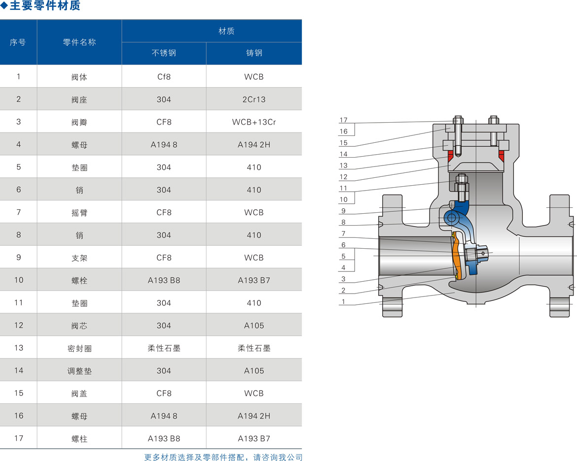 ③旋启式止回阀属于自动阀类,主要用于介质单向流动的管道上,只允许水平安装。